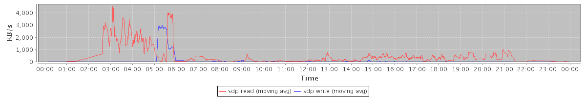 avg(sda read) = 27.74 avg(sda write) = 477.39