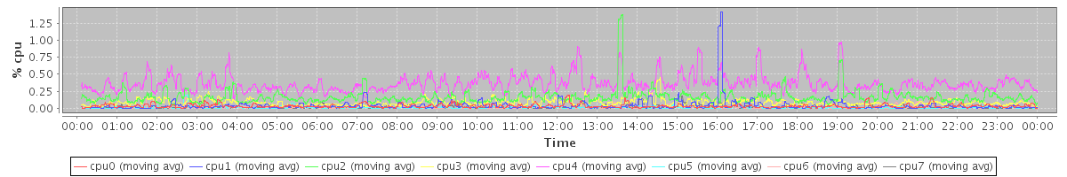 avg(cpu0) = 0.03 avg(cpu1) = 0.04 avg(cpu2) = 0.16 avg(cpu3) = 0.09 avg(cpu4) = 0.36 avg(cpu5) = 0.01 avg(cpu6) = 0.02 avg(cpu7) = 0.01