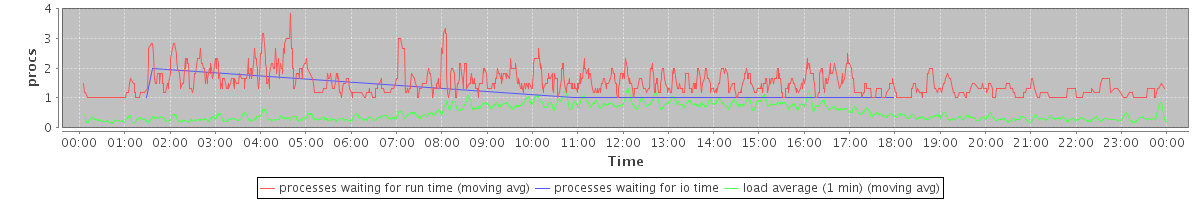avg(processes waiting for run time) = 0.65 avg(processes waiting for io time) = 0.00 avg(load average (1 min)) = 0.51