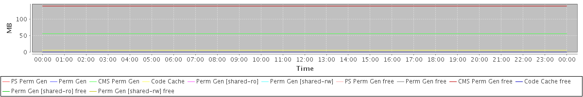 avg(PS Perm Gen) = 0.00 avg(Perm Gen) = 0.00 avg(CMS Perm Gen) = 56.04 avg(Code Cache) = 6.61 avg(Perm Gen [shared-ro]) = 0.00 avg(Perm Gen [shared-rw]) = 0.00 avg(PS Perm Gen free) = 0.00 avg(Perm Gen free) = 0.00 avg(CMS Perm Gen free) = 139.96 avg(Code Cache free) = 0.18 avg(Perm Gen [shared-ro] free) = 0.00 avg(Perm Gen [shared-rw] free) = 0.00
