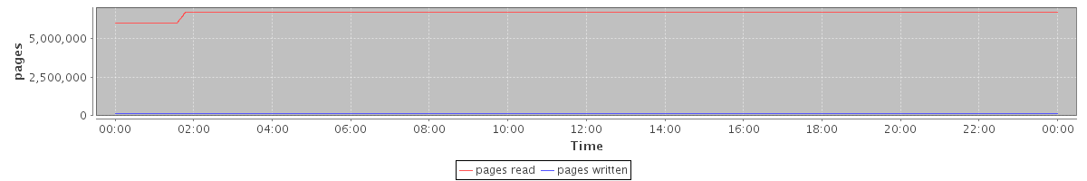 avg(pages read) = 6679394.84 avg(pages written) = 121597.00