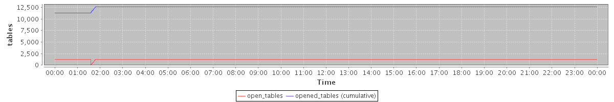 avg(open_tables) = 1195.20 avg(opened_tables (cumulative)) = 12510.17