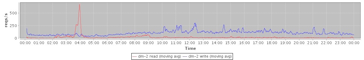 avg(dm-0 read) = 701.36 avg(dm-0 write) = 221.67