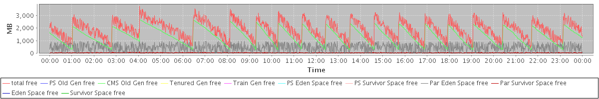 avg(total free) = 1910.31 avg(PS Old Gen free) = 0.00 avg(CMS Old Gen free) = 1381.40 avg(Tenured Gen free) = 0.00 avg(Train Gen free) = 0.00 avg(PS Eden Space free) = 0.00 avg(PS Survivor Space free) = 0.00 avg(Par Eden Space free) = 482.07 avg(Par Survivor Space free) = 46.84 avg(Eden Space free) = 0.00 avg(Survivor Space free) = 0.00
