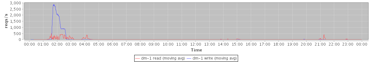 avg(dm-2 read) = 492.64 avg(dm-2 write) = 1085.62