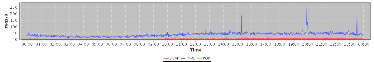 Host zm02.stanford.edu: Mailboxd: Request Rate by Client Protocol
