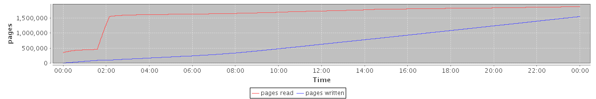 avg(pages read) = 1640236.73 avg(pages written) = 682559.57