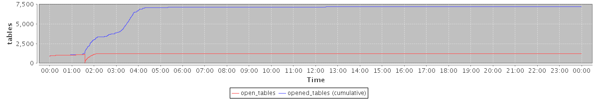 avg(open_tables) = 1181.20 avg(opened_tables (cumulative)) = 6439.27