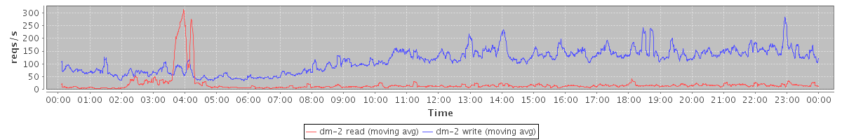 avg(dm-0 read) = 312.51 avg(dm-0 write) = 184.23
