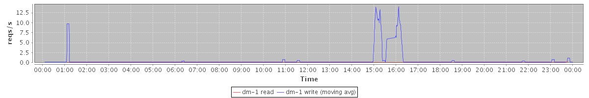 avg(dm-1 read) = 0.01 avg(dm-1 write) = 2.13