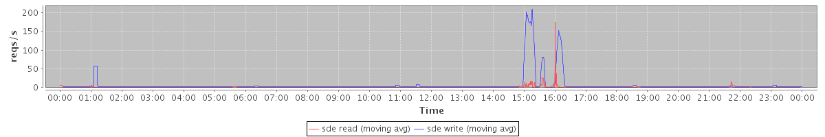 avg(sde read) = 16.42 avg(sde write) = 140.45