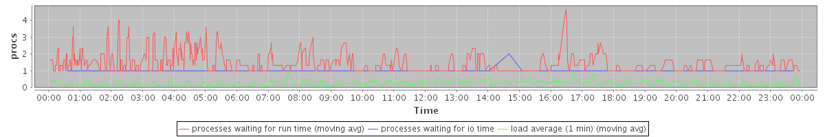 avg(processes waiting for run time) = 0.41 avg(processes waiting for io time) = 0.01 avg(load average (1 min)) = 0.25