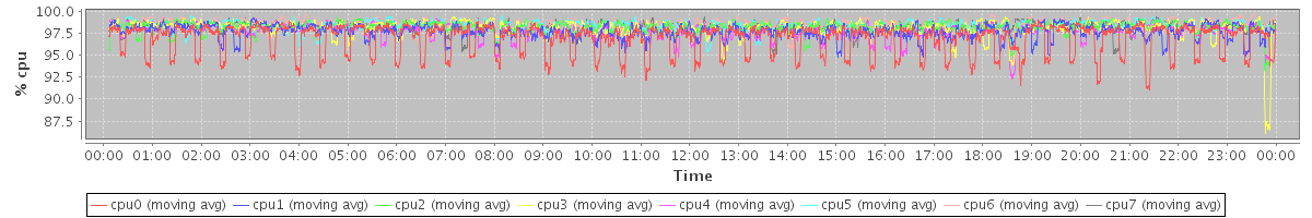 avg(cpu0) = 96.87 avg(cpu1) = 97.64 avg(cpu2) = 98.15 avg(cpu3) = 98.05 avg(cpu4) = 97.80 avg(cpu5) = 98.32 avg(cpu6) = 98.46 avg(cpu7) = 98.21