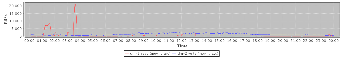 avg(dm-1 read) = 841.21 avg(dm-1 write) = 310.81