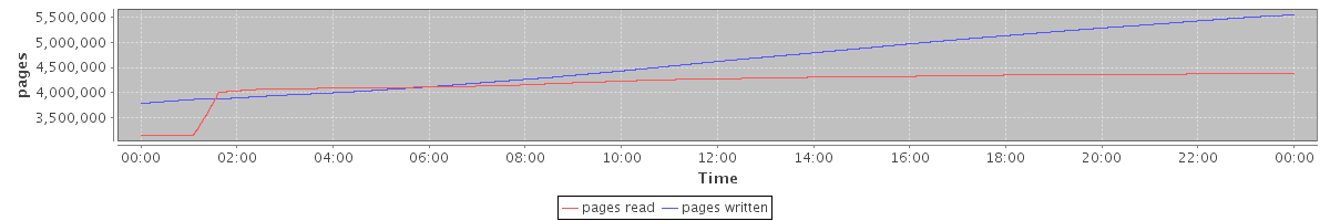 avg(pages read) = 4180794.82 avg(pages written) = 4632305.98