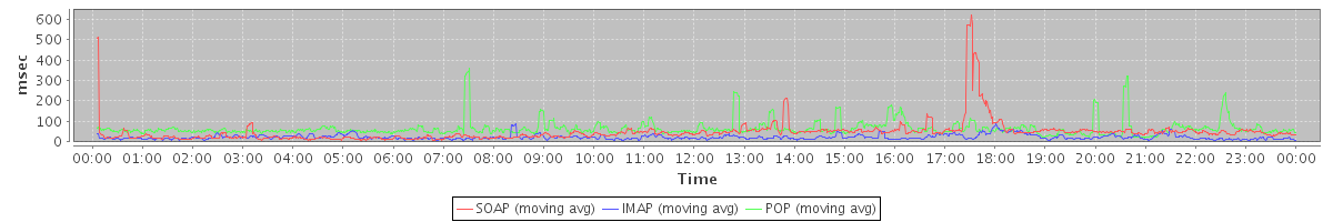 avg(IMAP) = 25.42 avg(IMAP SSL) = 1093.03 avg(POP) = 1.68 avg(POP SSL) = 2.29