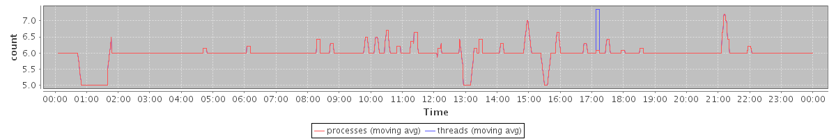 avg(processes) = 5.99 avg(threads) = 6.00