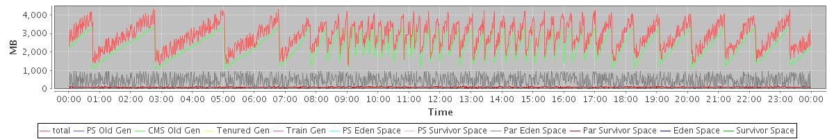 avg(total) = 2871.22 avg(PS Old Gen) = 0.00 avg(CMS Old Gen) = 2312.46 avg(Tenured Gen) = 0.00 avg(Train Gen) = 0.00 avg(PS Eden Space) = 0.00 avg(PS Survivor Space) = 0.00 avg(Par Eden Space) = 474.58 avg(Par Survivor Space) = 84.18 avg(Eden Space) = 0.00 avg(Survivor Space) = 0.00