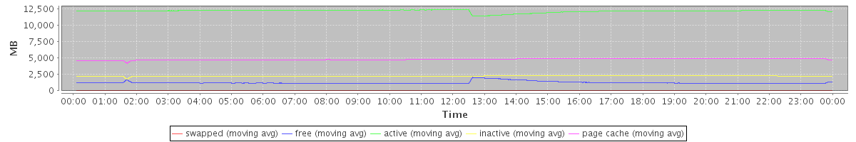 avg(swapped) = 0.25 avg(free) = 1233.52 avg(active) = 12153.43 avg(inactive) = 2229.12 avg(page cache) = 4778.88