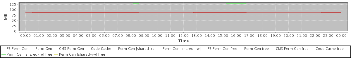 avg(PS Perm Gen) = 0.00 avg(Perm Gen) = 0.00 avg(CMS Perm Gen) = 127.26 avg(Code Cache) = 47.49 avg(Perm Gen [shared-ro]) = 0.00 avg(Perm Gen [shared-rw]) = 0.00 avg(PS Perm Gen free) = 0.00 avg(Perm Gen free) = 0.00 avg(CMS Perm Gen free) = 87.31 avg(Code Cache free) = 0.44 avg(Perm Gen [shared-ro] free) = 0.00 avg(Perm Gen [shared-rw] free) = 0.00