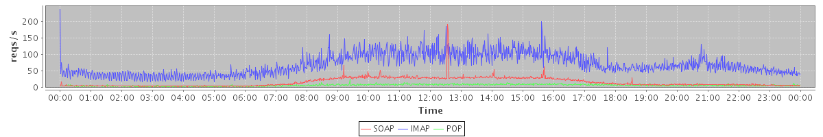 Host zm08.stanford.edu: Mailboxd: Request Rate by Client Protocol