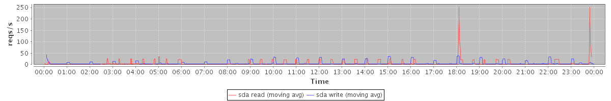 avg(sda read) = 37.45 avg(sda write) = 406.84