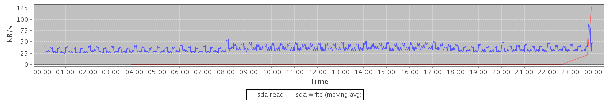 avg(sda read) = 0.05 avg(sda write) = 35.35