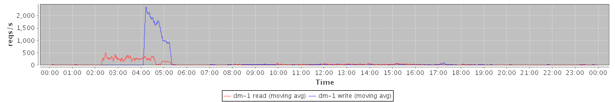 avg(dm-1 read) = 2204.49 avg(dm-1 write) = 359.47