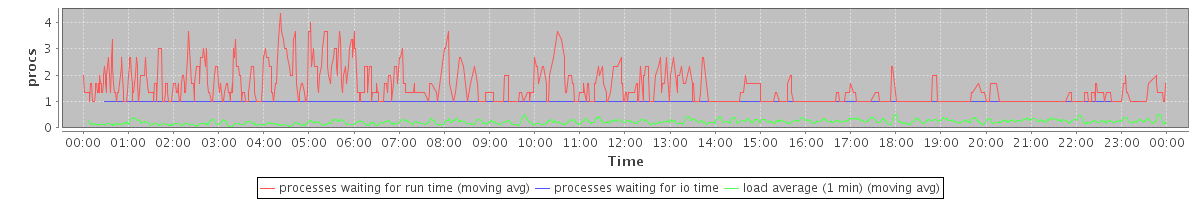 avg(processes waiting for run time) = 0.43 avg(processes waiting for io time) = 0.01 avg(load average (1 min)) = 0.23