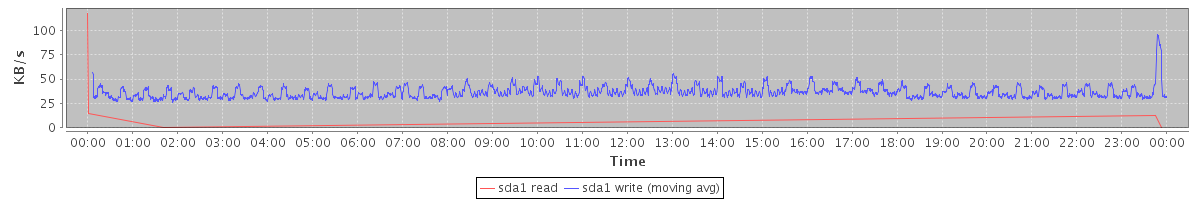 avg(sda1 read) = 0.05 avg(sda1 write) = 36.63