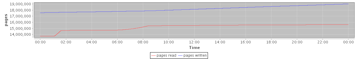 avg(pages read) = 15213668.43 avg(pages written) = 18198202.06