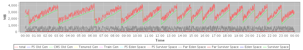 avg(total) = 2811.77 avg(PS Old Gen) = 0.00 avg(CMS Old Gen) = 2242.37 avg(Tenured Gen) = 0.00 avg(Train Gen) = 0.00 avg(PS Eden Space) = 0.00 avg(PS Survivor Space) = 0.00 avg(Par Eden Space) = 486.55 avg(Par Survivor Space) = 82.85 avg(Eden Space) = 0.00 avg(Survivor Space) = 0.00