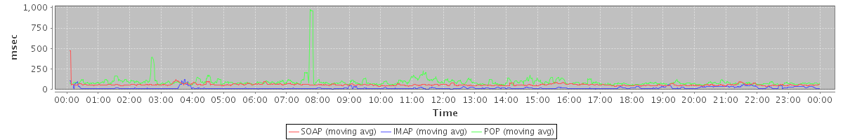 Host zm01.stanford.edu: Mailboxd: Response Time by Client Protocol