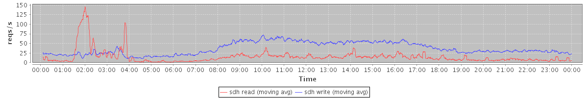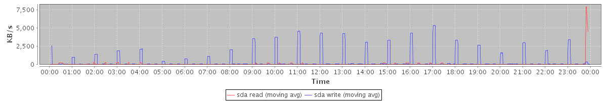 avg(sda1 read) = 24.72 avg(sda1 write) = 360.38