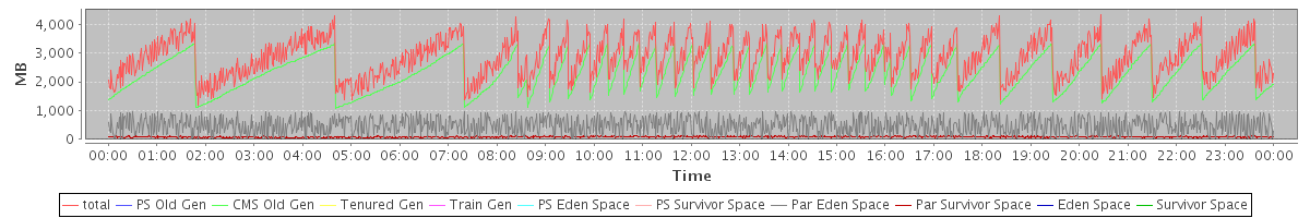avg(total) = 2854.31 avg(PS Old Gen) = 0.00 avg(CMS Old Gen) = 2289.03 avg(Tenured Gen) = 0.00 avg(Train Gen) = 0.00 avg(PS Eden Space) = 0.00 avg(PS Survivor Space) = 0.00 avg(Par Eden Space) = 481.79 avg(Par Survivor Space) = 83.49 avg(Eden Space) = 0.00 avg(Survivor Space) = 0.00