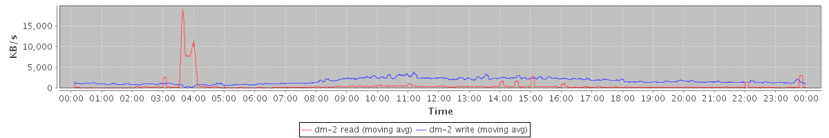 avg(dm-2 read) = 552.46 avg(dm-2 write) = 1690.70