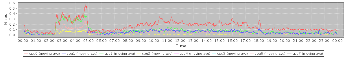 avg(cpu0) = 0.16 avg(cpu1) = 0.04 avg(cpu2) = 0.08 avg(cpu3) = 0.01 avg(cpu4) = 0.00 avg(cpu5) = 0.00 avg(cpu6) = 0.05 avg(cpu7) = 0.00