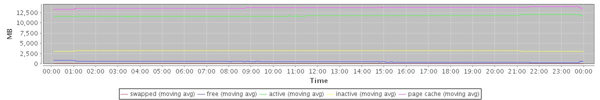 avg(swapped) = 0.16 avg(free) = 525.31 avg(active) = 11728.61 avg(inactive) = 3195.06 avg(page cache) = 13702.36
