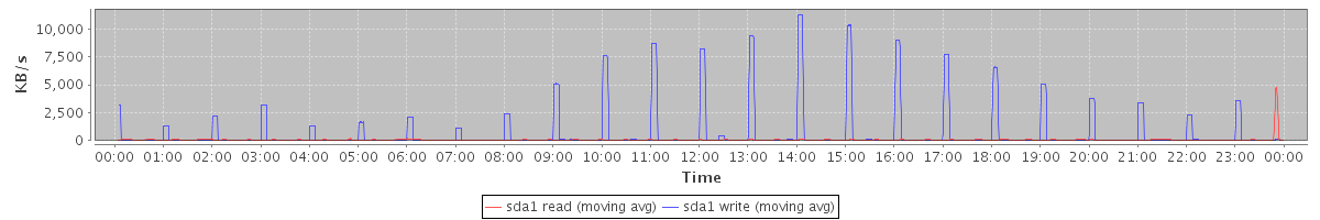 avg(sda1 read) = 32.26 avg(sda1 write) = 629.87