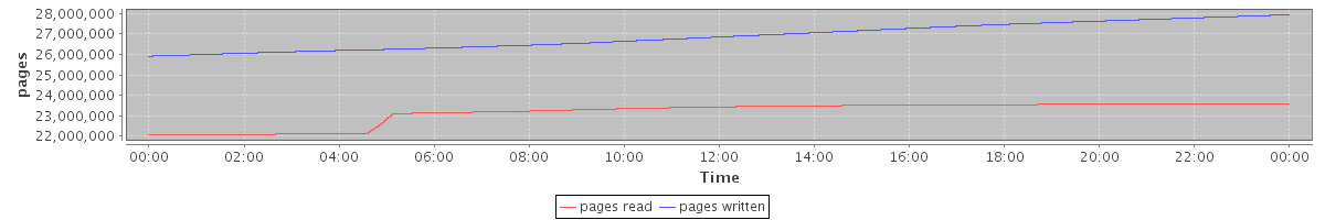 avg(pages read) = 23166476.99 avg(pages written) = 26889865.69