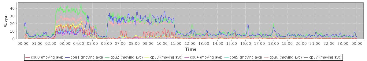 avg(cpu0) = 2.02 avg(cpu1) = 1.49 avg(cpu2) = 1.74 avg(cpu3) = 0.99 avg(cpu4) = 0.65 avg(cpu5) = 0.89 avg(cpu6) = 1.38 avg(cpu7) = 0.86