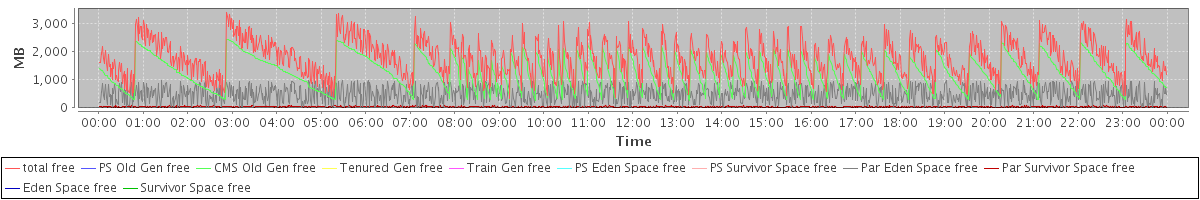 avg(total free) = 1776.85 avg(PS Old Gen free) = 0.00 avg(CMS Old Gen free) = 1246.93 avg(Tenured Gen free) = 0.00 avg(Train Gen free) = 0.00 avg(PS Eden Space free) = 0.00 avg(PS Survivor Space free) = 0.00 avg(Par Eden Space free) = 493.94 avg(Par Survivor Space free) = 35.99 avg(Eden Space free) = 0.00 avg(Survivor Space free) = 0.00
