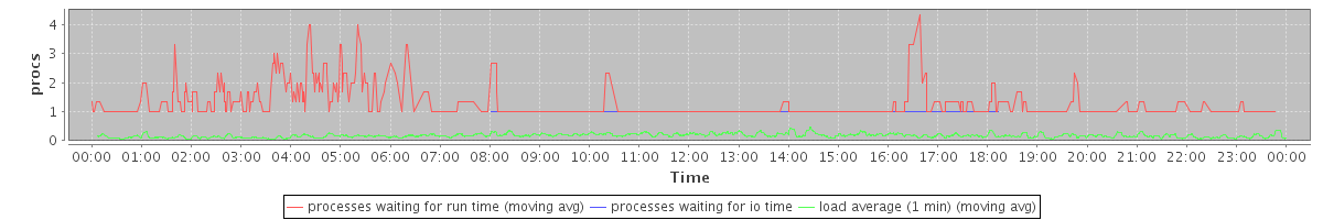 avg(processes waiting for run time) = 0.31 avg(processes waiting for io time) = 0.00 avg(load average (1 min)) = 0.17