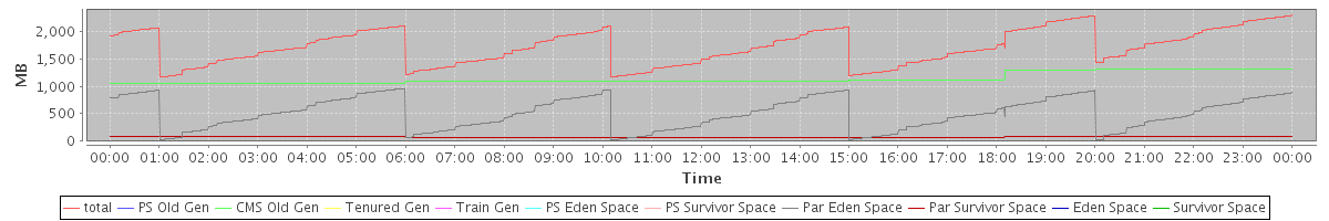 avg(total) = 1716.85 avg(PS Old Gen) = 0.00 avg(CMS Old Gen) = 1136.16 avg(Tenured Gen) = 0.00 avg(Train Gen) = 0.00 avg(PS Eden Space) = 0.00 avg(PS Survivor Space) = 0.00 avg(Par Eden Space) = 504.63 avg(Par Survivor Space) = 76.05 avg(Eden Space) = 0.00 avg(Survivor Space) = 0.00