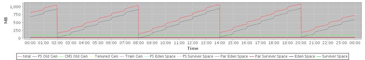 avg(total) = 617.46 avg(PS Old Gen) = 0.00 avg(CMS Old Gen) = 105.65 avg(Tenured Gen) = 0.00 avg(Train Gen) = 0.00 avg(PS Eden Space) = 0.00 avg(PS Survivor Space) = 0.00 avg(Par Eden Space) = 483.74 avg(Par Survivor Space) = 28.07 avg(Eden Space) = 0.00 avg(Survivor Space) = 0.00