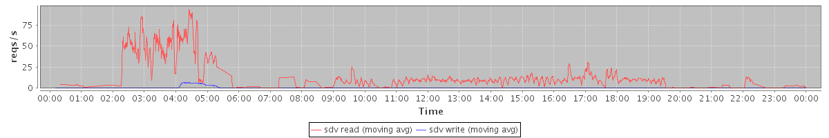 avg(sda1 read) = 31.41 avg(sda1 write) = 526.33