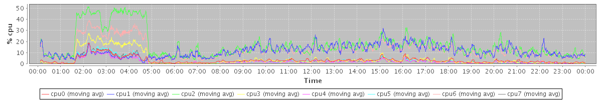 avg(cpu0) = 1.72 avg(cpu1) = 1.24 avg(cpu2) = 1.54 avg(cpu3) = 1.01 avg(cpu4) = 0.72 avg(cpu5) = 0.85 avg(cpu6) = 1.18 avg(cpu7) = 0.79