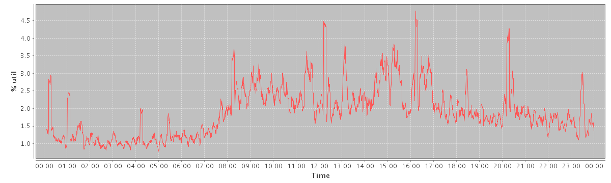avg(user) = 1.27 avg(sys) = 0.17 avg(idle) = 98.49 avg(iowait) = 0.05 avg(nice) = 0.00 avg(irq) = 0.00 avg(softirq) = 0.00