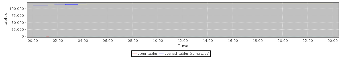 avg(open_tables) = 1191.80 avg(opened_tables (cumulative)) = 117038.71