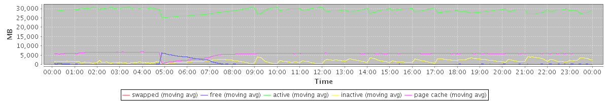 avg(swapped) = 0.25 avg(free) = 533.94 avg(active) = 28943.45 avg(inactive) = 1872.77 avg(page cache) = 5680.89